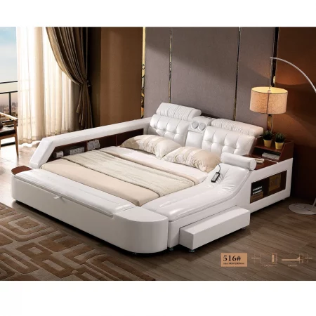 حقيقي إطار سرير جلدي لينة سرير مدلك التخزين الآمن المتكلم مصباح ليد غرفة نوم كام mueble دي دورميتوريو/كاماس كوارتو