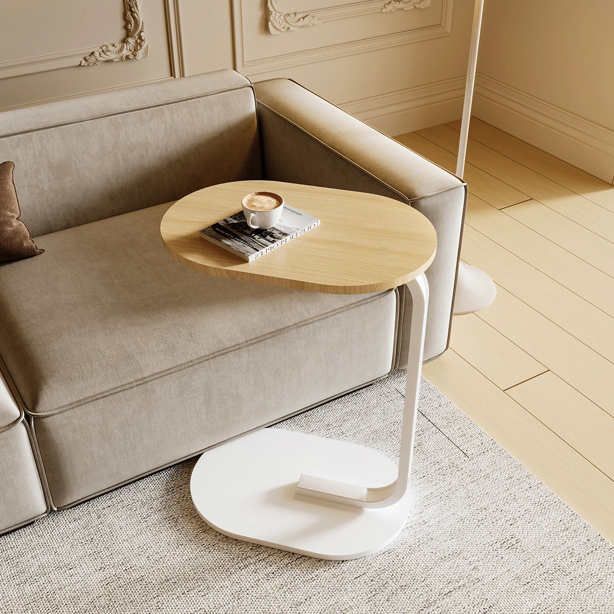 طاولة القهوة AnneFish على شكل حرف C، أريكة طاولة جانبية، طاولة نهاية لغرفة المعيشة وغرفة النوم، صغيرة سهلة التجميع
