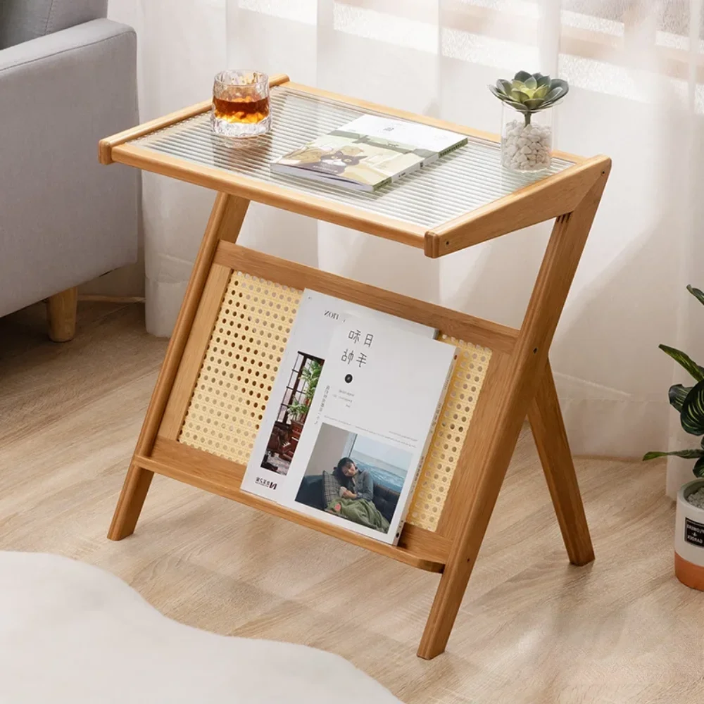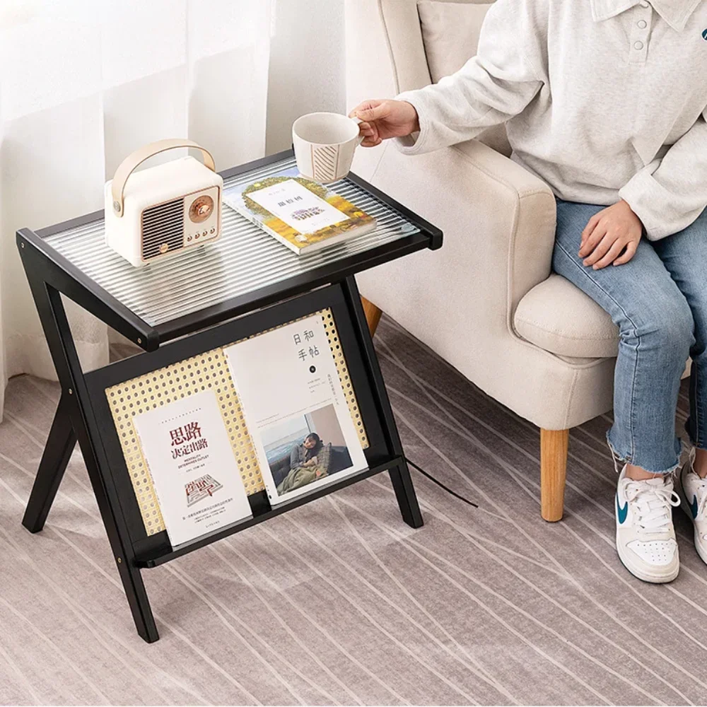 طاولة جانبية من الخيزران قابلة للطي لغرفة المعيشة ، أثاث كبير السعة لغرفة النوم ، توفير مساحة ، طاولة جانبية للسرير للقهوة والشاي