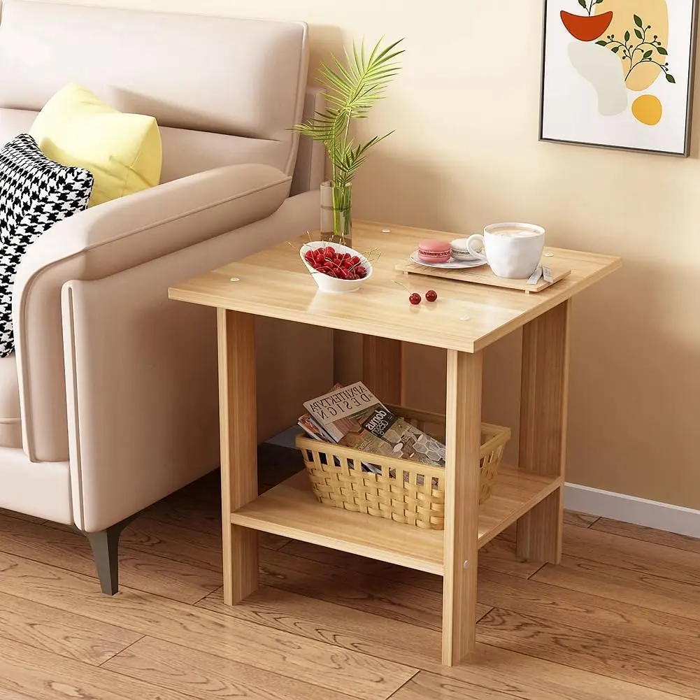 طاولة خشبية جانبية بطبقتين ، منضدة نوم بسيطة ، رف تخزين حديث ، خزانة صغيرة ، طاولة جانبية لتخزين غرفة النوم