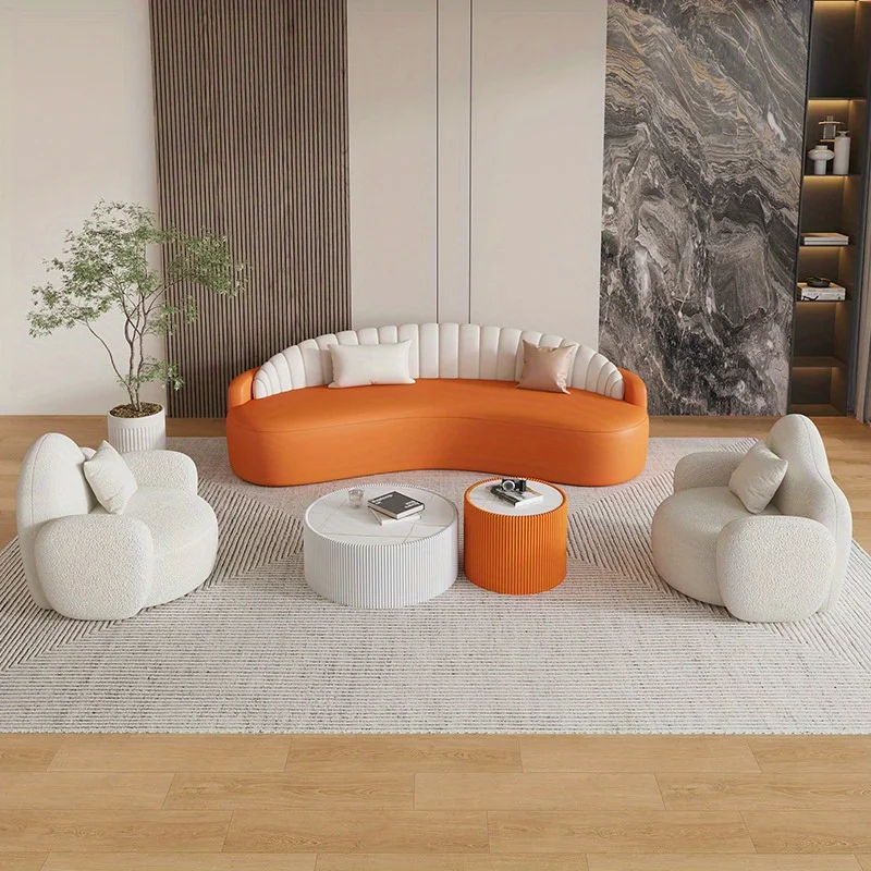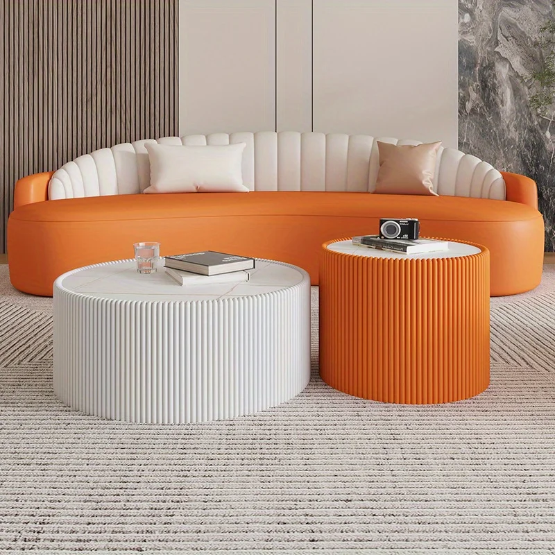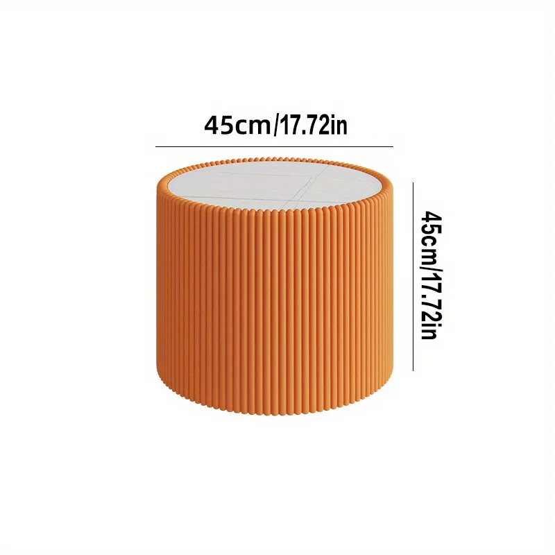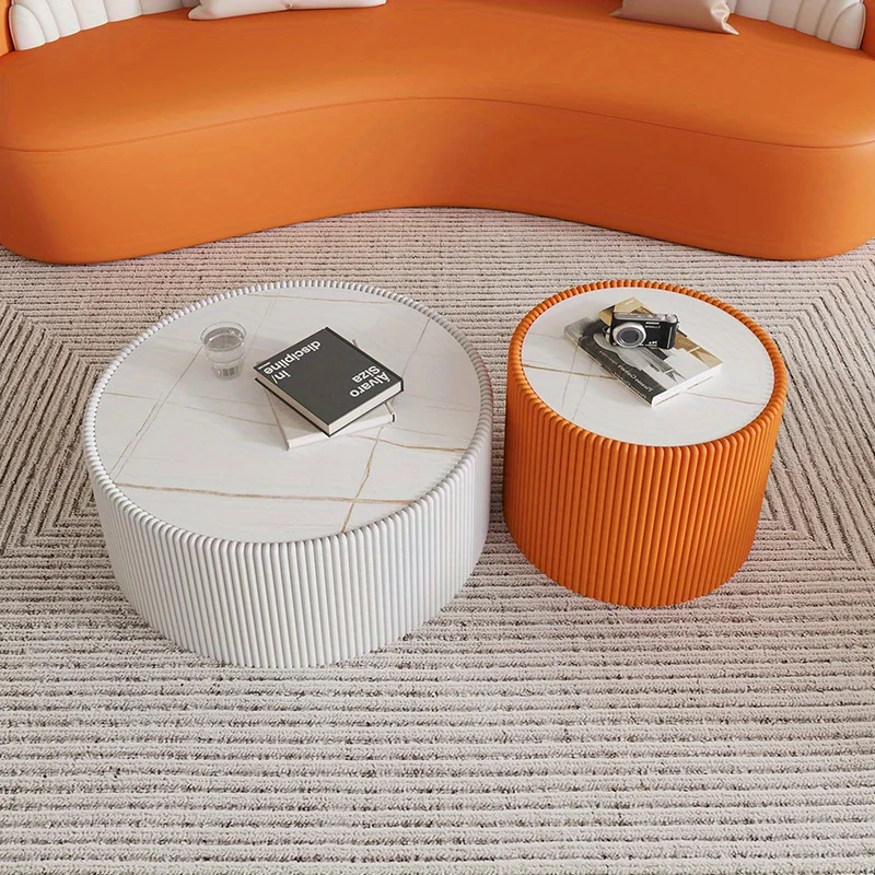 طاولة زاوية من جلد البولي يوريثان ذات لوح صخري بسيط على الطراز الكريمي، طاولة قهوة مستديرة صغيرة لغرفة المعيشة الحديثة