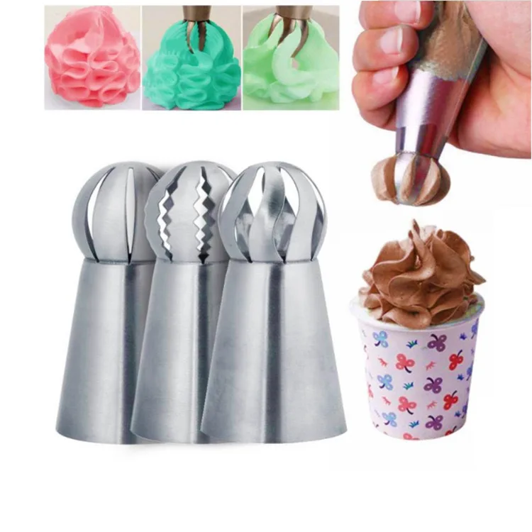 3 قطعة/المجموعة الفولاذ المقاوم للصدأ كب كيك المجال الكرة شكل بودرة الأنابيب الفوهات تزيين الكيك أداة المعجنات كريم صنبور ل DIY الخبز